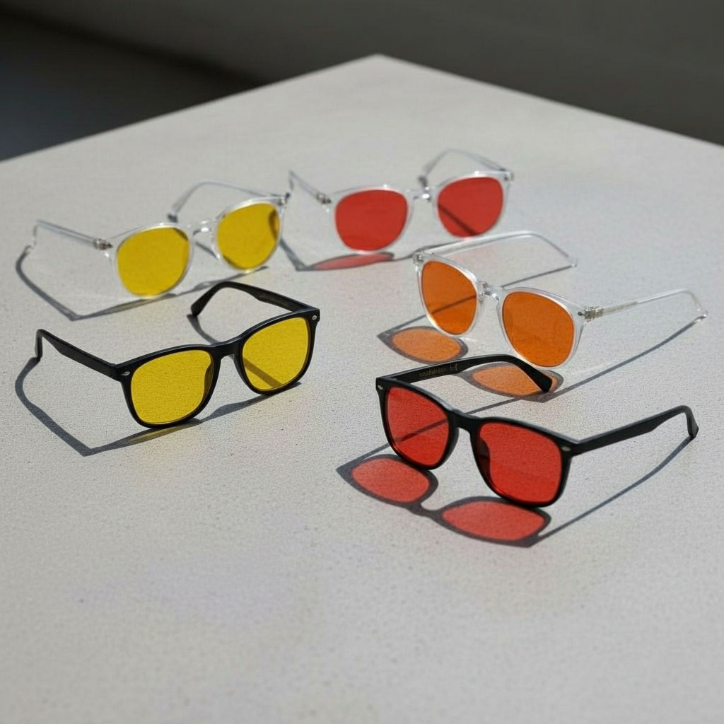 Biohacking Angle → blocking green + blue together maximizes melatonin production, making Red/Orange lenses the “ultimate sleep hack.” -